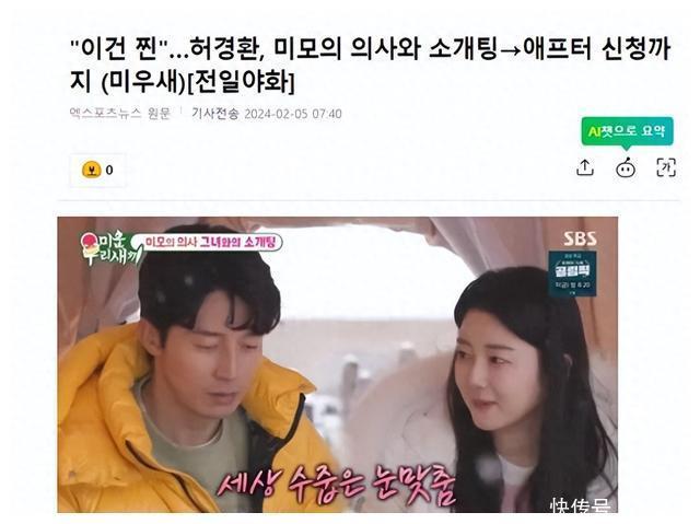 许景焕和一位绮丽的大夫相亲了。2月5日,有韩国媒体报说念,4日播出的综艺节目《我家的熊孩子》中,公开了许景焕在笑剧演员吴正泰佳耦的安排下相亲的景况。